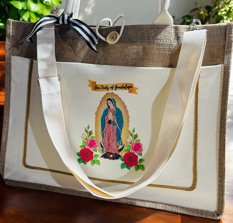 En Divine Imprint, creamos prendas y accesorios creativos inspirados en la fe. Nuestros diseños únicos incorporan imágenes católicas, perfectas para expresar tu creencia en estilo.